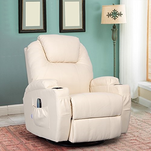Esright Esright Massage Recliner Chair Heated Pu Leather Ergonomic Lounge 360 Degree Swivel Cream